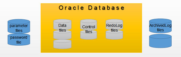 - 相关的操作系统文件(即存储在计算机硬盘上的文件)集合,这些文件组织在一起,成为了一个逻辑实体,即为Oracle数据库。