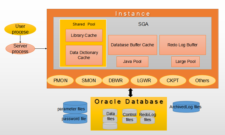 User Process:用户进程(比如用户启动sqlplus,开启的就是一个用户进程来访问数据库)