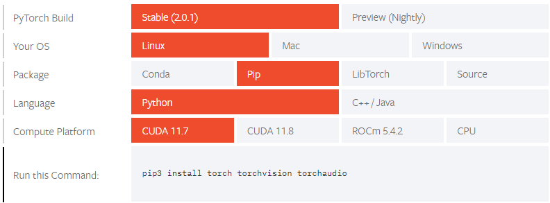 https://pytorch.org/官网可以根据操作系统、显卡驱动版本,安装命令选择安装,推荐使用清华源