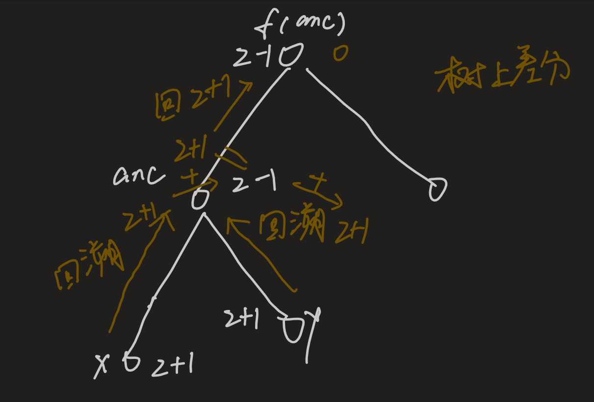 那么为什么可以这样做呢,最后可以达到将x到y路径上的每一个点都加上1的效果