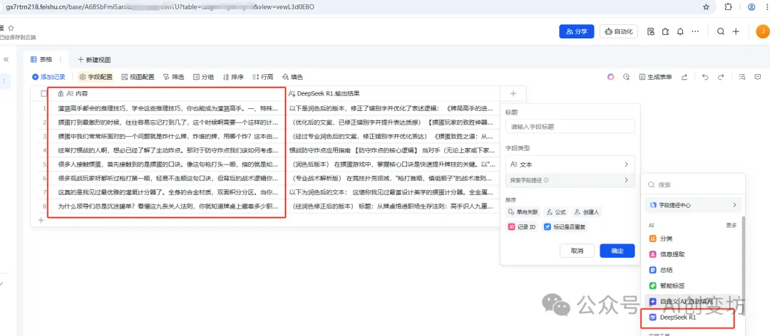 飞书中创建多维表格,添加列内容,上述的代码就可以组装飞书文档的写入参数了