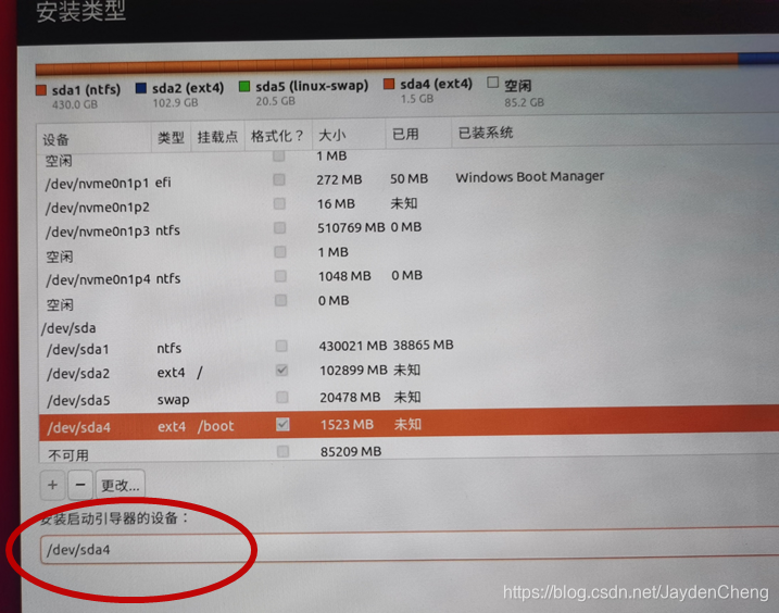 问题四:分区后“安装启动引导器设备”的选择。