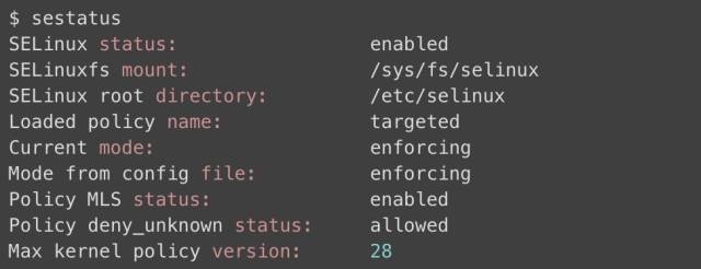 上面的输出表示应用程序的主机已启用 SELinux。在本地开发环境中,可以更新 SELinux 使得权限更宽松。