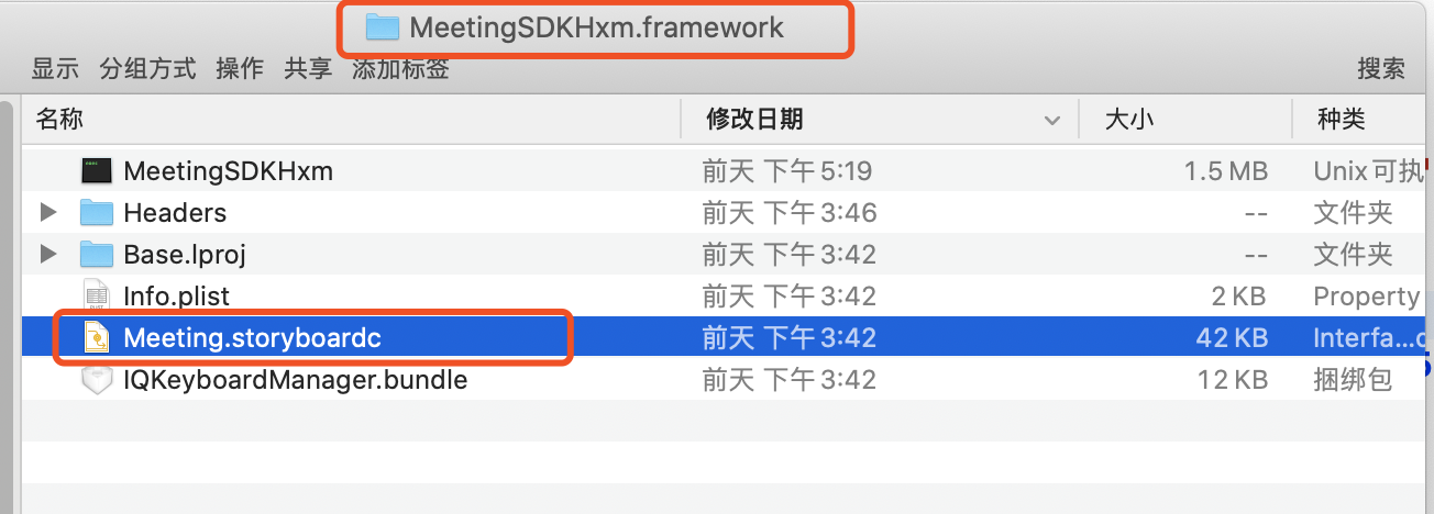 这样MeetingSDKHxm.framework内的页面就能访问Resources.bundle里的图片了,但是我觉得可能是哪里配置的不对,Resources.bundle应该还是可以放到MeetingSDKHxm.framework内,哪位看客有知道的指点一下。!!!!!!!!
