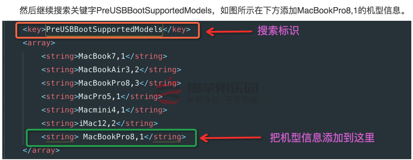 8、不要关闭,再把刚才搜索的关键字PreUSBBootSupportedModels 改写为 USBBootSupportedModels,保存文件,替换掉 Contents/Info.plist ,此操作会提示进行鉴定,输入密码回车即可,请根据提示进行操作!