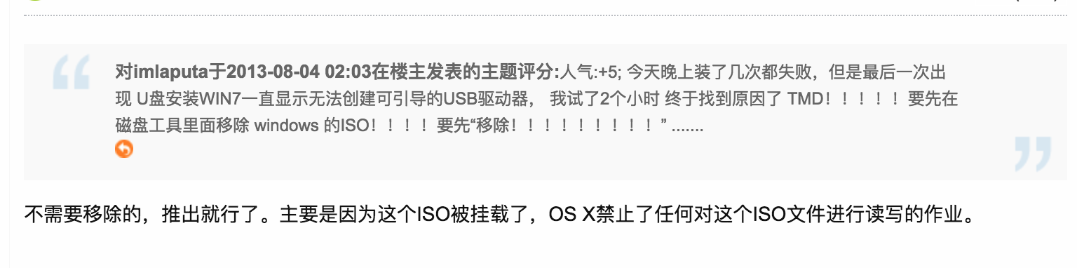 12、底下的评论一语中的,我之前双击过这个iso文件,所以我就把桌面的图标推出了,再试一次,OK!!!!