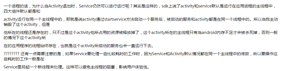 在网上看到个好的关于activity与其启动的service的解释,记录一下: