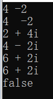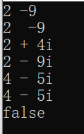 #include <iostream> #include "Complex.hpp" int main() { using namespace std; Complex c1{2, 4}, c2; cin >> c2; cout << c2.get_real() << " " << c2.get_imag() << endl; cout << c1 << endl; cout << c2 << endl; cout << c1 + c2 << endl; c1 += c2; cout << c1 << endl; cout << boolalpha << (c1 == c2) << endl; }