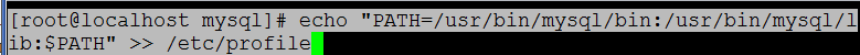 echo "PATH=/usr/bin/mysql/bin:/usr/bin/mysql/lib:$PATH" >> /etc/profile