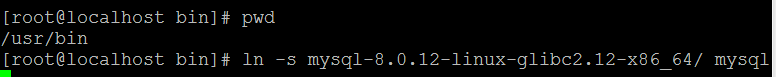 # ln -s mysql-8.0.12-linux-glibc2.12-x86_64/ mysql