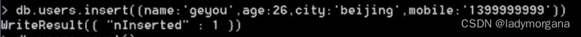 - 插入数据 > db.usersinsert([“name”:”zhangsan”})