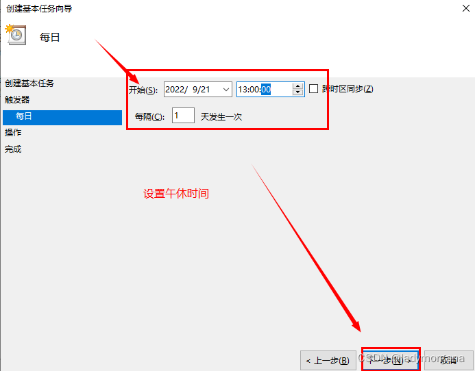Step2 设置每天,13:00 (午休时间,可以自行设置)