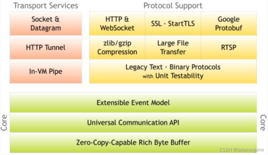 - Netty是也就最流行的NIO框架,他的健壮性、功能、性能、可定制性和可扩展性在同类框架都是首屈一指的。它已经得到成百上千的商业商用项目验证,如Hadoop的RPC框架Avro、以及我们之后学习的JMS框架|