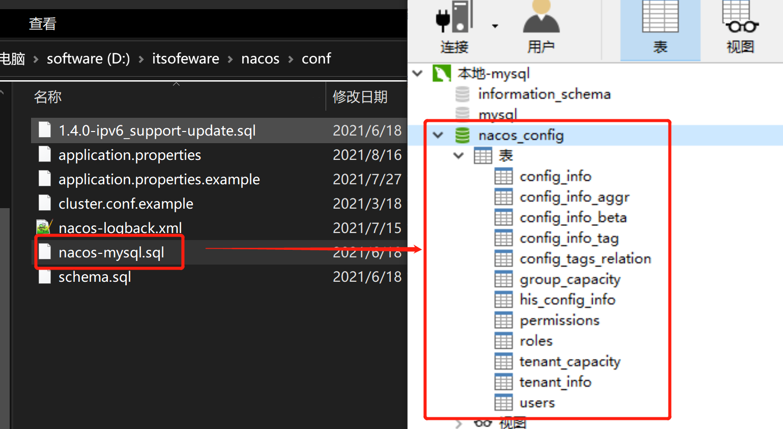 2. 本地创建数据库 nacos_config ,执行 nacos\conf\nacos-mysql.sql