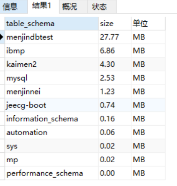 ) AS size, 'MB' as '单位'