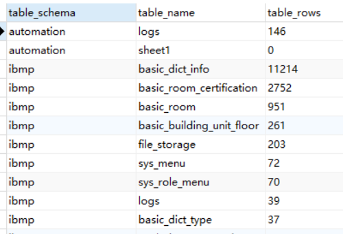 3、各个数据库表行数