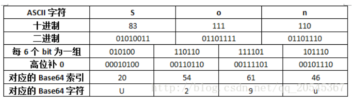 也就是说,如果将索引转换为对应的二进制数据的话需要至多6个Bit。然而ASCII码需要8个Bit来表示,那么怎么使用6个Bit来表示8个Bit的数据呢?6个Bit当然不能存储8个Bit的数据,但是4*6个Bit可以存储3*8个Bit的数据啊!如下表所示:
