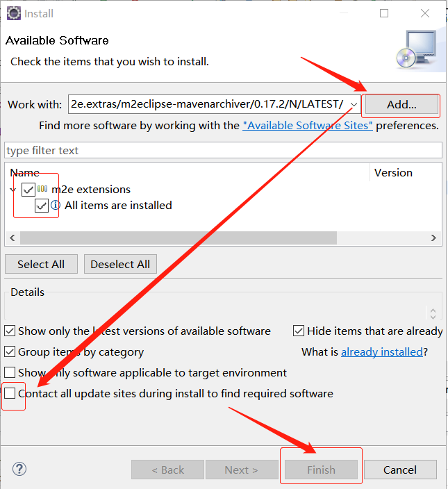 Location中输入:https://otto.takari.io/content/sites/m2e.extras/m2eclipse-mavenarchiver/0.17.2/N/LATEST/