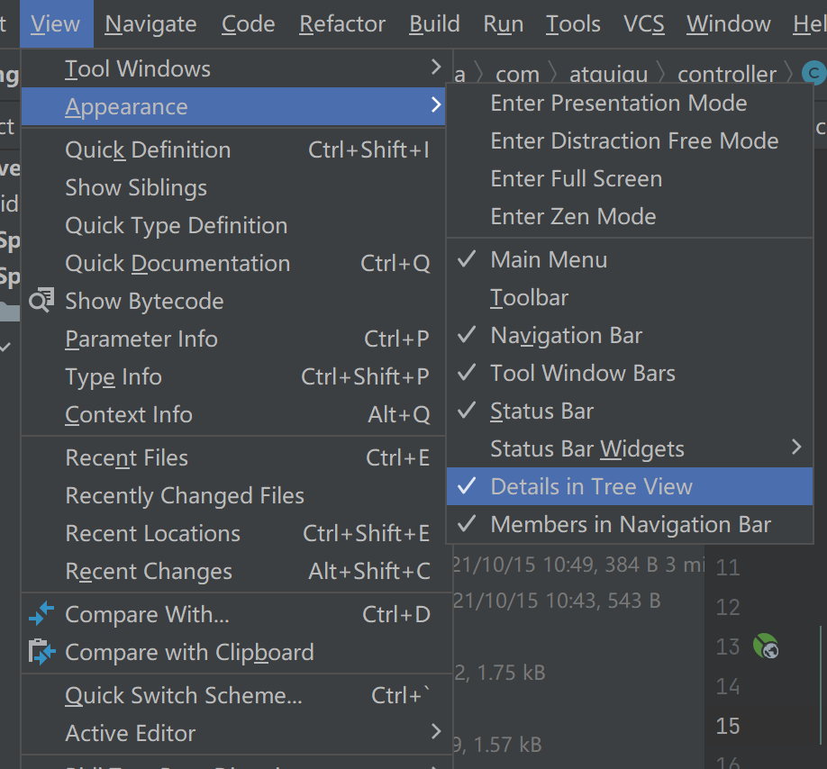 1. idea可以显示侧边文件的最后修改时间以及文件大小
