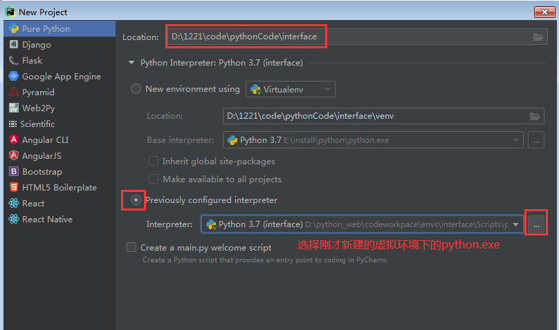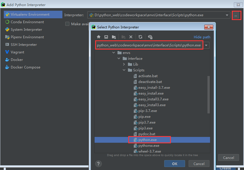 虚拟环境如果下拉没有刚才新建的虚拟环境,点击旁边这个按钮去新建虚拟环境。
