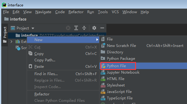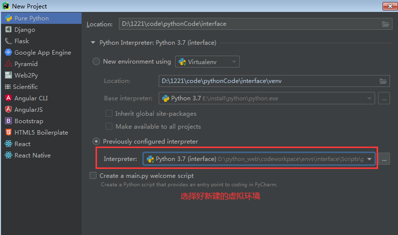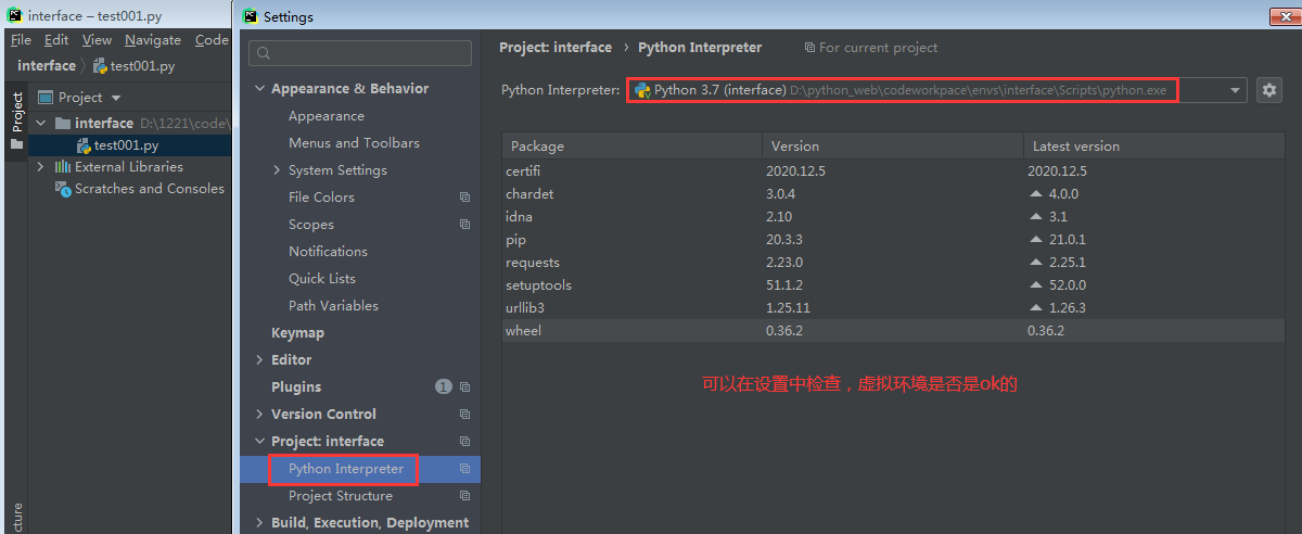 进行接口测试,所以新建一个 interface 的虚拟环境