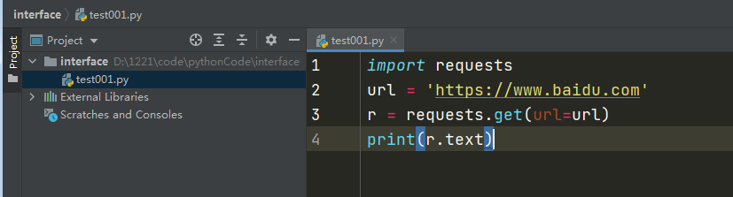 这里选择一个场景进行操作,刚开始使用pycharm使用python进行接口测试。