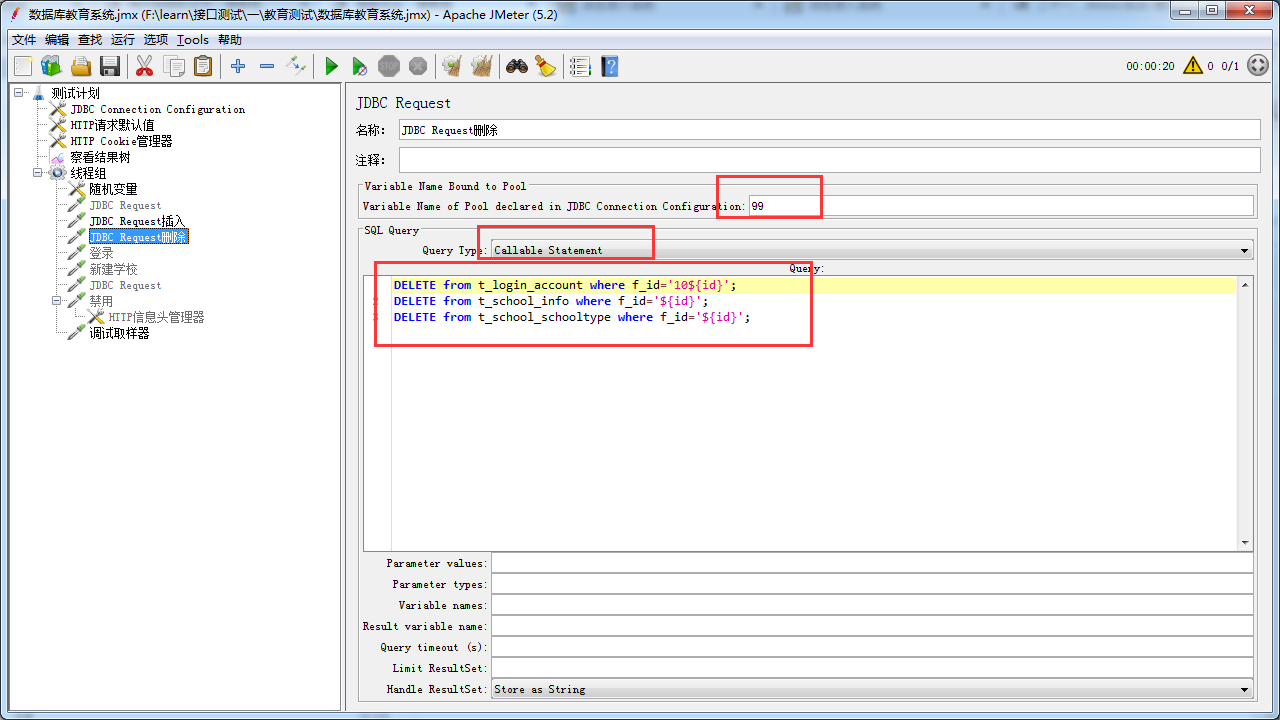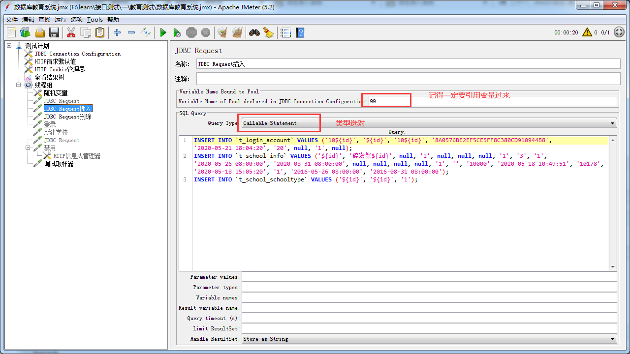 二、JDBC Request选择Callable statement