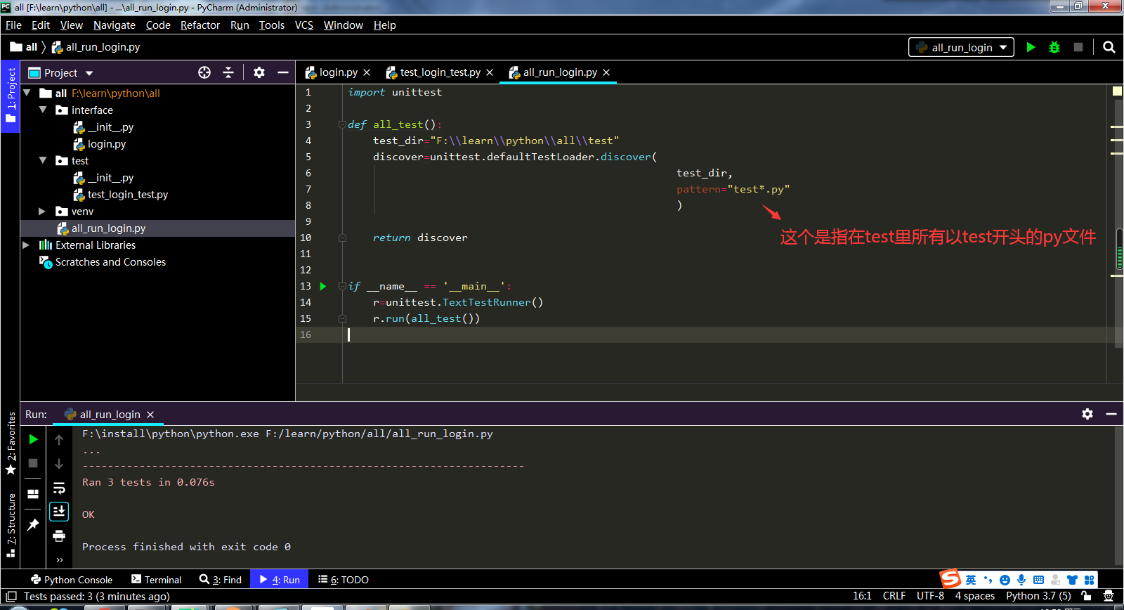 四十五、Python里unittest框架以及执行py文件所有以test开头的用例