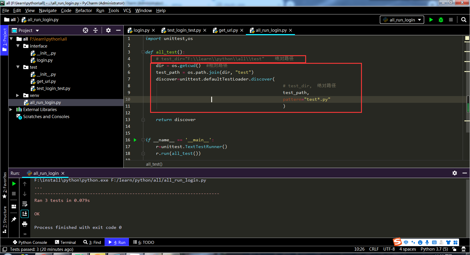 找 到 测试用例的相对路径可直接用它,(我的测试用例在test_login_test里,所以找的是以tes开头的py文件的路径)