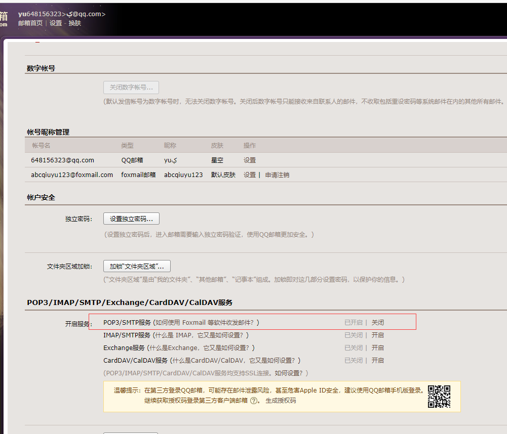 使用QQ邮箱发送邮件,使用的是授权码,需要先到QQ邮箱申请授权码。