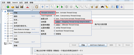 启动jmeter,添加线程组——jp@gc - Stepping Thread Group