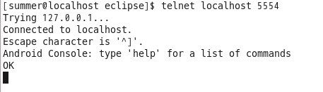 在模拟器下模拟打电话等功能要以telnet的方式进行,首先你要知道你的模拟器在本机上的端口号,很简单,模拟器启动以后,名称前面的数字就是端口号,如:5554:summer21 ,我的summer21模拟器的端口号就是5554。接下来运行: