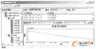 性能退化评估子系统的主界面如图8所示。其中的性能评估曲线模拟了风机某测点处发生转子不平衡且不平衡量逐渐加大时,风机整体性能也随之下降的情况。