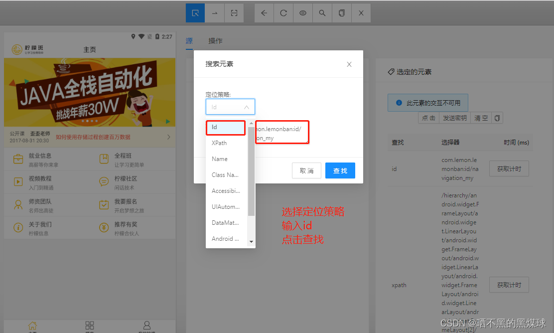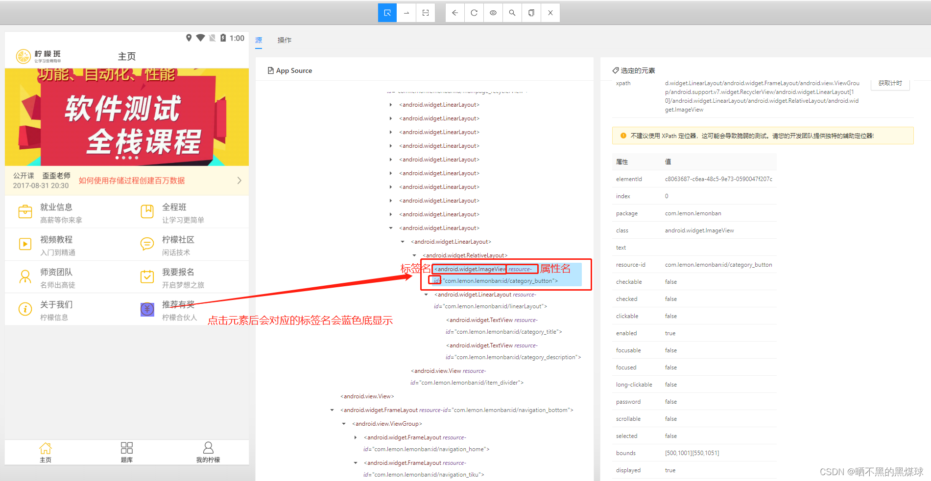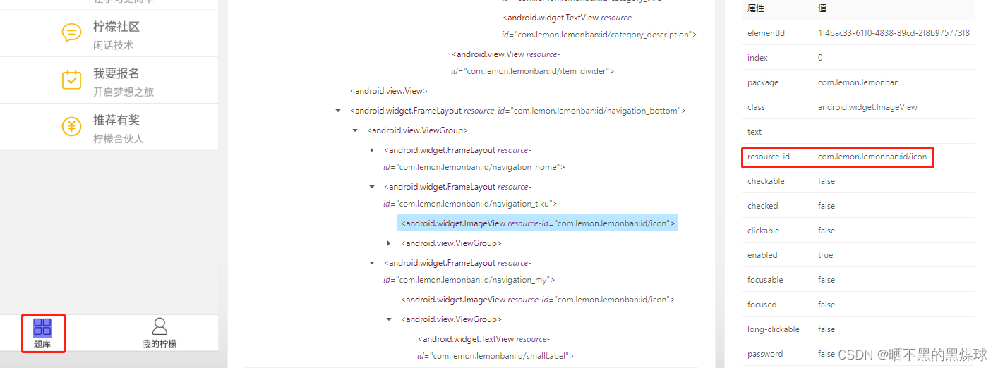 resource-id 不一定唯一(柠檬班app中菜单的id都一样)