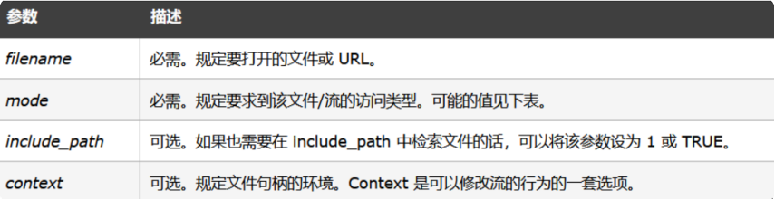 语法:fopen(filename,mode,include_path,context)