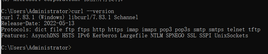 curl使⽤curl --version查看版本以及⽀持的协议