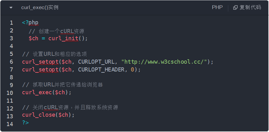 功能 : 执⾏⼀个cURL会话, 这个函数应该在初始化⼀个cURL会话并且全部的选项都被设置后被调⽤。