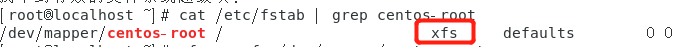 9.cat /etc/fstab | grep centos-root看到文件系统为xfs