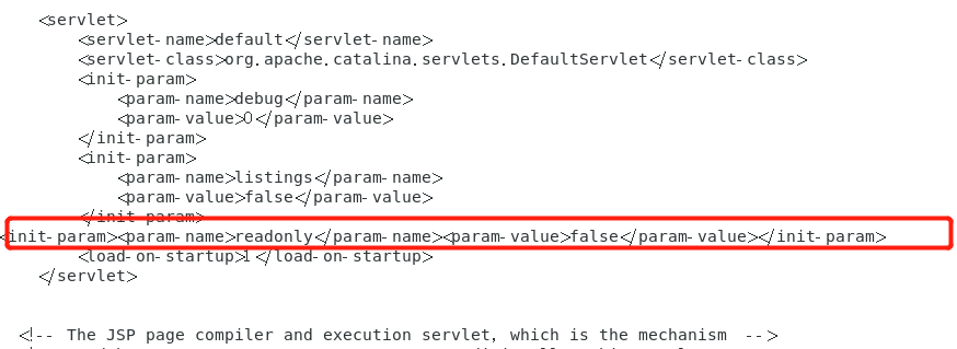 Tomcat配置问题,配置了可写(readonly=false),导致我们可以往服务器写文件。