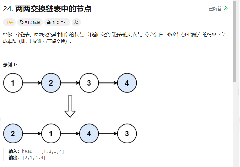 https://leetcode.cn/problems/swap-nodes-in-pairs/description/