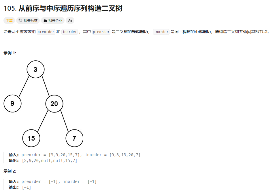 https://leetcode.cn/problems/construct-binary-tree-from-preorder-and-inorder-traversal/description/