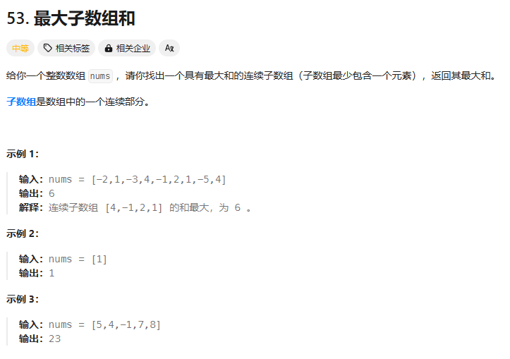 https://leetcode.cn/problems/maximum-subarray/description/?envType=study-plan-v2&envId=top-100-liked