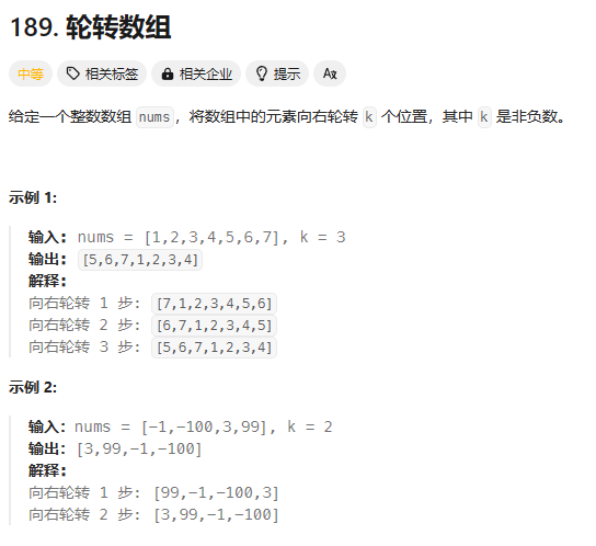 https://leetcode.cn/problems/rotate-array/description/?envType=study-plan-v2&envId=top-100-liked