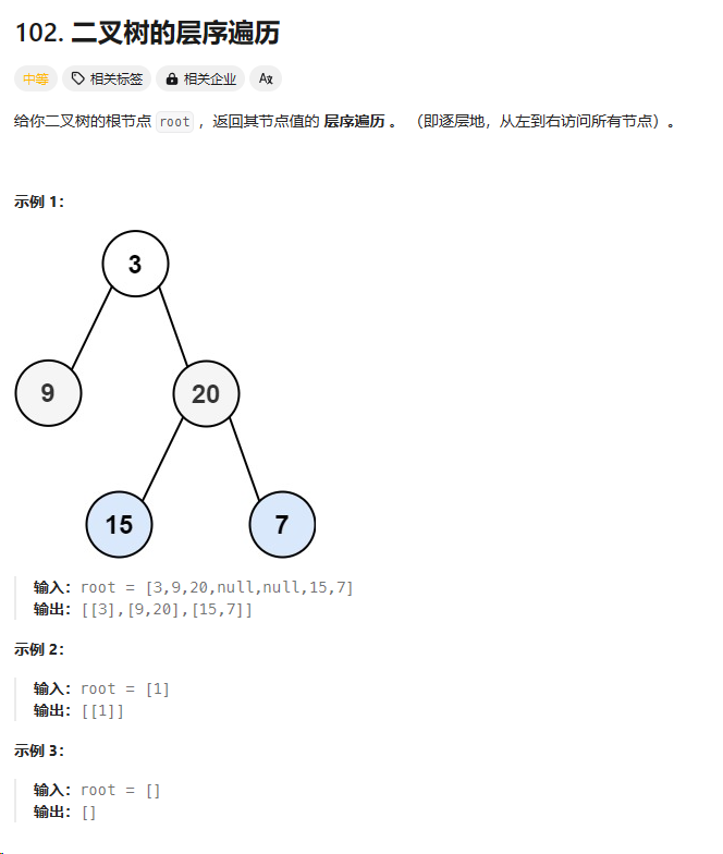 https://leetcode.cn/problems/binary-tree-level-order-traversal/description/?envType=study-plan-v2&envId=top-100-liked