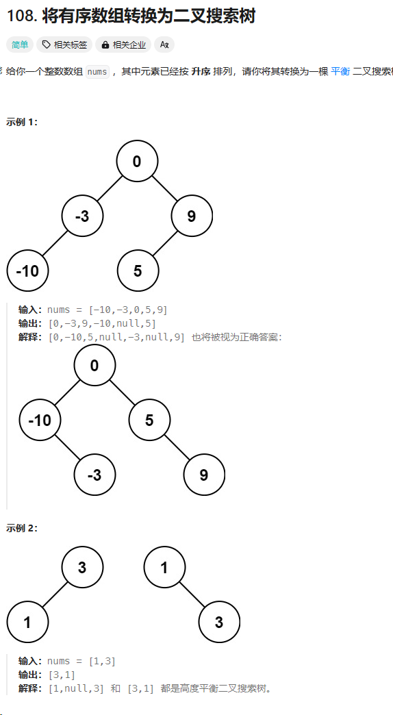 https://leetcode.cn/problems/convert-sorted-array-to-binary-search-tree/description/?envType=study-plan-v2&envId=top-100-liked