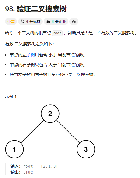 https://leetcode.cn/problems/validate-binary-search-tree/description/?envType=study-plan-v2&envId=top-100-liked