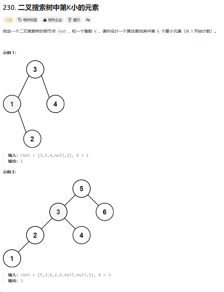 https://leetcode.cn/problems/kth-smallest-element-in-a-bst/description/?envType=study-plan-v2&envId=top-100-liked