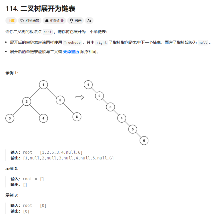https://leetcode.cn/problems/flatten-binary-tree-to-linked-list/description/?envType=study-plan-v2&envId=top-100-liked