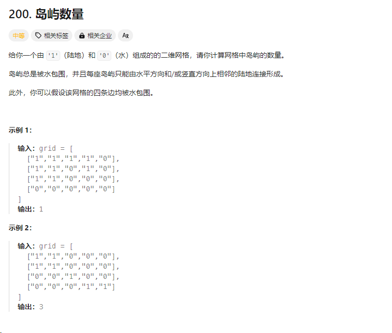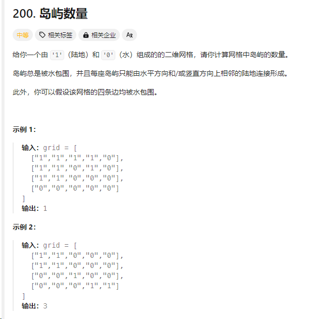 总结:遍历所有点,如果是陆地而且未被遍历过,就从这个点开始走一次dfs。