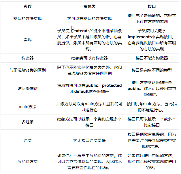 - 实现方法不同,抽象类是通过继承extends,接口是通过实现implements